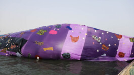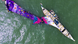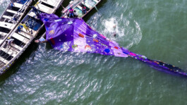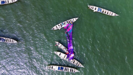 Between the continents a metaphor becomes a sail. The ribbon floats between two boats. The ocean becomes its stage. Migration. Movement. Connection. From the global South to the global North and back again.