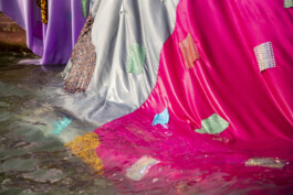 He works with discarded textiles and second-hand clothing to explore memory, identity,